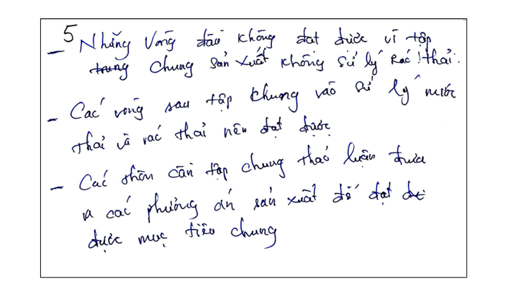 Moreover, there is a close link between how this question was answered and the following questions about their knowledge of responsibilities from the local authorities. Players from Quang Bi village have all answered that they had a poor knowledge of authorities in charge of pollution management.