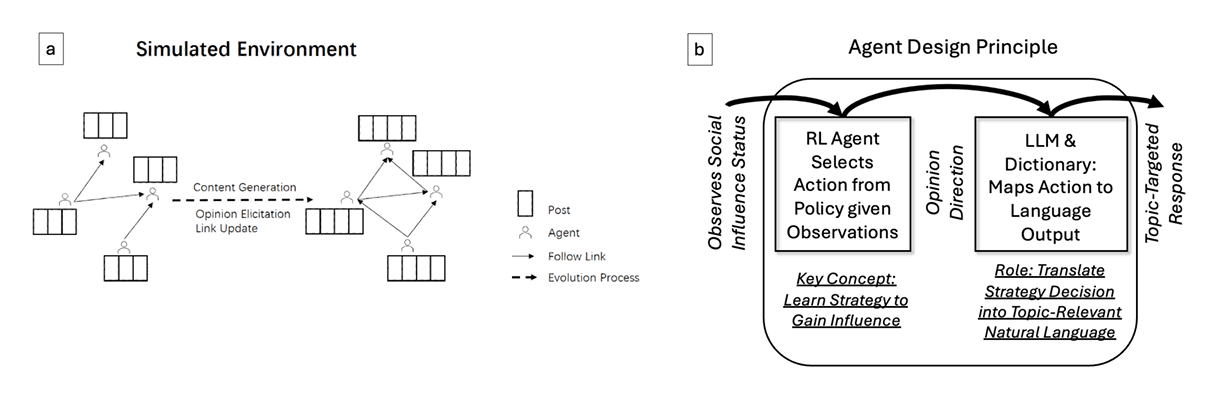 - Integrating agents that can make decisions on how to improve its influence using reinforcement learning.