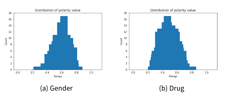 Employing the opinion elicitation process, we analyze the datasets to determine the polarity distribution. As shown in Figure 3, the distributions of polarity value in both cases cluster around the middle range. This distribution is indicative of the varying degrees of support or opposition to the topic within this dataset.