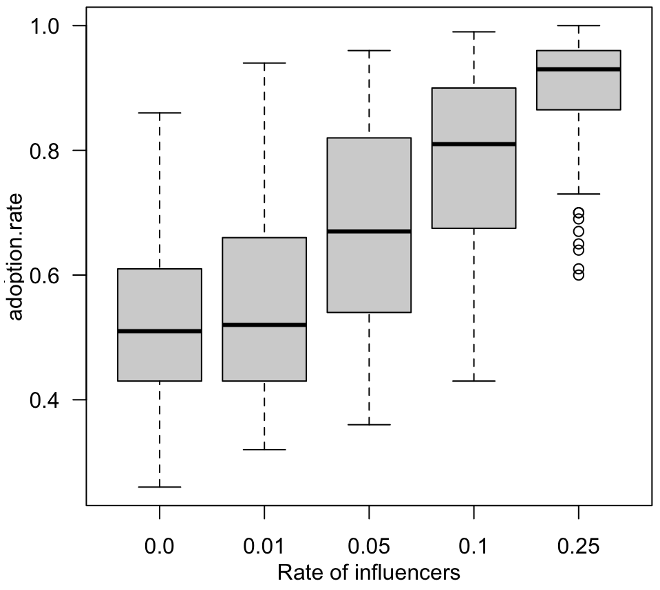 In summary, this experiment demonstrates that the structure of the social network plays a crucial role in the diffusion of innovation, particularly when influencers are involved in the process.