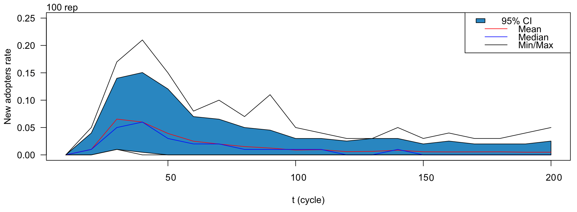 Building on this theory, numerous studies have sought to model the innovation diffusion process, aiming to understand how innovations spread and to predict their success in becoming established within a society. In particular, a widely recognized model that incorporates elements of Rogers’ work is the Bass model (Bass 1969). This model is designed to predict the peak of new adoptions. However, its explanatory power is limited, as it does not attempt to capture the decision-making processes of individual adopters. Instead, it focuses solely on the overall trajectory of the number of adopters over time. The model does not account for Rogers’ proposed stages of adoption, population heterogeneity, interactions between individuals, or the influence of dissemination efforts implemented by institutions.