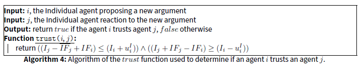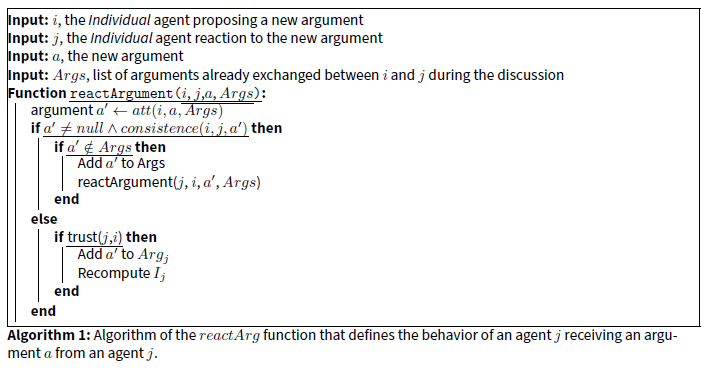 Similarly, Butler et al. (2019b) combines Dung’s framework with interpersonal influence processes (Deffuant et al. 2000) to model collective decision-making. Agents deliberate in groups, exchanging arguments and adjusting their opinions. Extensions by Butler et al. (2019a) and Butler et al. (2019b) introduce argumentative epistemic vigilance, allowing agents to reject arguments based on inconsistencies between messages and sources.