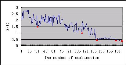 where n is the number of members in the group. Let E(t) = | D(t)- C(t)|. Here the filter functions as follows: At each time stage t the lowest combinations E(t) are kept. All remaining combinations are disregarded.
