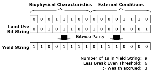 | Figure 4. Illustration of bitstring-based model of Land Use choice outcome. |