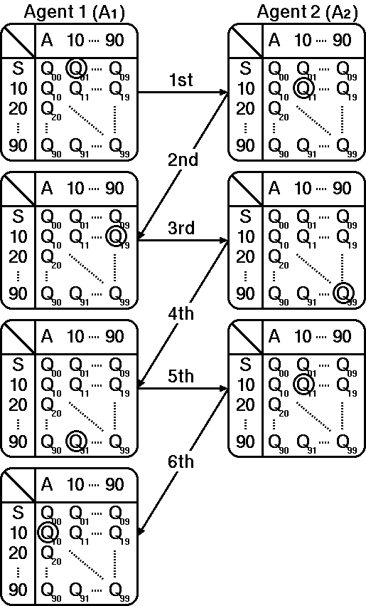 TAKADAMA et al. (2006), "Can Agents Acquire Human-like Behaviors in a Sequential Bargaining Game? - Comparison of Roth's and Q-learning agents -," The Seventh International Workshop on Multi-Agent-Based Simulation (MABS'06), pp. 153-166.