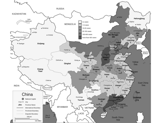 Figure 1: SARS Map: Cumulative number of reported cases as of April 8, 2003 (World Health Organization 2010)
