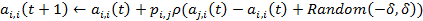 ai,j ← ai,j + ρ pi,j(aj,j-ai,j + Random(-δ,δ)) ; // j propagates aj,j