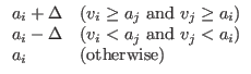 - Downward adjustment (a'i < ai) when vi < aj and vj < ai