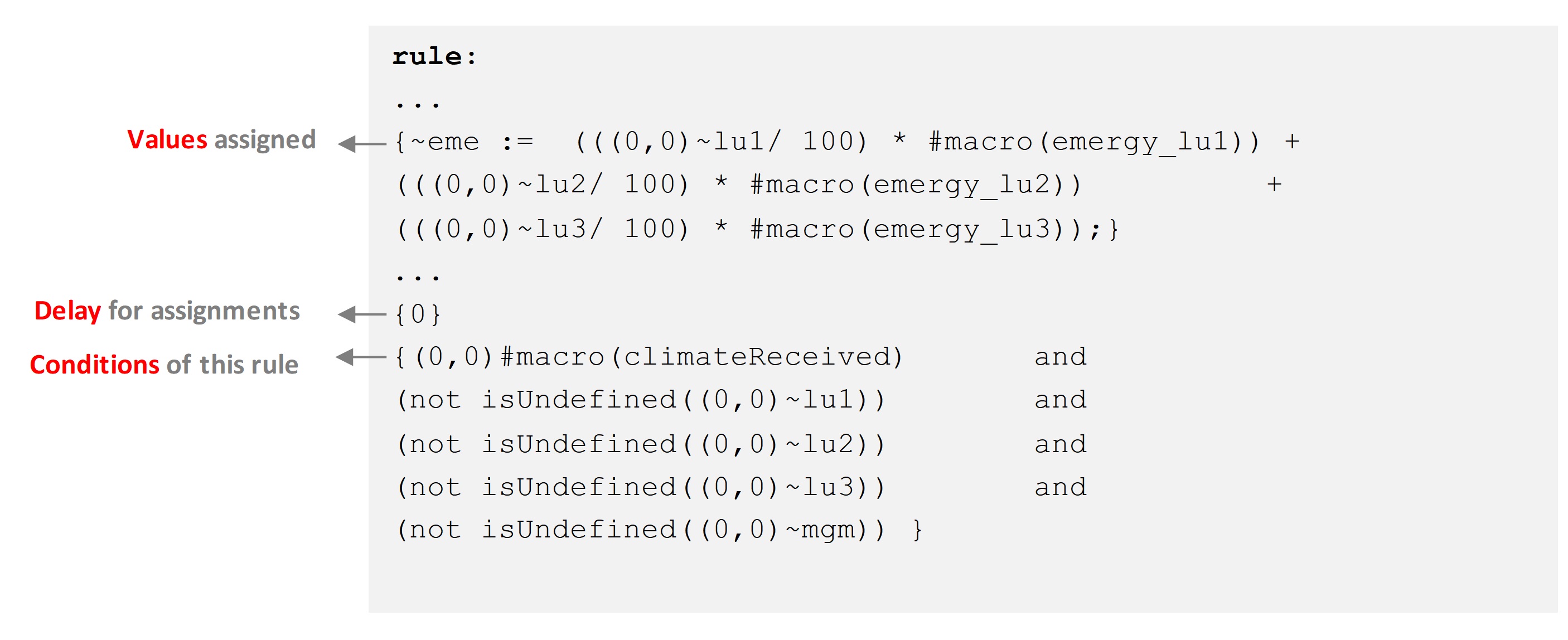 Behavioral rules are used in the Cell-DEVS language to define the change of attributes that are local to each cell. These variables can express properties for that unit of space (e.g., in the 2-dimensional case it can be an agricultural plot). When the modeler uses such variables to express also the attributes of “agents” located at cells, then the ABM approach can be merged into the system. In the case of AgroDEVS each agent (namely, a farmer) remains fixed to his or her plot, and rules are used to express changes both for the physical environment and the for farmer, which eventually affect each other. In this work, we adopted the CD++ simulation software toolkit, which is capable of interpreting Cell-DEVS and DEVS models and of simulating them. CD++ implements a generic DEVS “abstract simulator”, consisting of a standardized algorithmic recipe that specifies how to simulate any DEVS model independently of any programming language of choice. We believe this generic, reusable and extensible DEVS-based approach provides AgroDEVS with very desirable scalability and sustainability features. The full model represents the collective (i.e., landscape-level) function that emerges from the aggregation of all farmers’ outcomes. It also depends on exogenous variables (e.g., climate, crop (output) prices, and production costs) as well as endogenous variables (e.g., the farmer’s technological level, the outcomes of neighboring farmers, and each farmer’s performance history). The model proved particularly well suited to reproduce empirical situations where (a) there are changes in the relative production/output prices between potential land uses, (b) there is a specific climate regime that impacts on crop yields, or (c) there are varying aspiration levels for the farmers (Gotts & Polhill 2009).