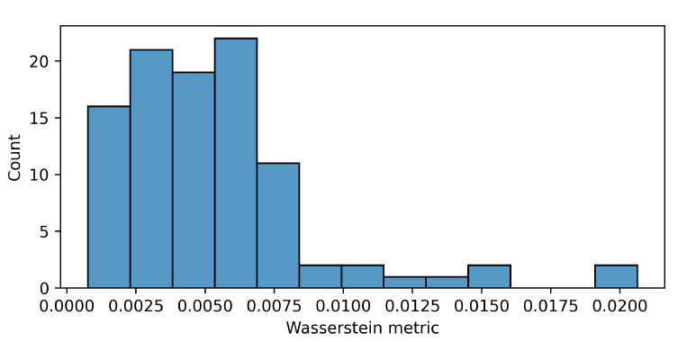 There exist cases in which the structure of an observed age distribution cannot be generated by either of the two stochastic processes. In these cases, we suggest modifying the empirical distribution by changing it into a distribution that fulfils the conditions established by the first stochastic process (the one without activation rates). We can determine the modified distribution by fitting a condition-compliant function to the empirical data to create a modified age distribution. Determining whether this is a reasonable course of action depends on how different the fitted distribution looks with respect to the original one. This can be determined by calculating the Wasserstein metric, indicating the minimum amount of “work” required to convert the original distribution to the fitted one (Kantorovich 1960; Vaserstein 1969). Section 3.5 shows that, in many real-world cases, adopting this procedure is a sensible choice.