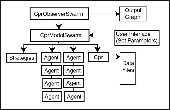 Figure 1. The Swarm Objects and Relationships for the CPR Simulations