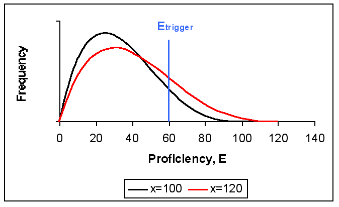 If E / Etrigger + 2 x rnd > 2 when E < Etriggeror 2 x rnd > 1 when E >= Etrigger