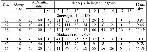 | Table 3. Number of the 300 iterations in a run when the largest subgroup of a 16-person group contained 8, 9, ..., 16 people. |